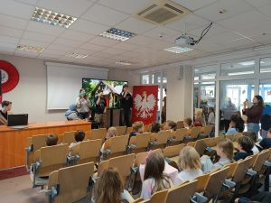Licealiści zaprezentowali scenki o podróżowaniu w różnych językach, a uczniowie SP z ciekawością je obejrzeli. To był dzień pełen dobrej zabawy i inspiracji do nauki języków obcych!